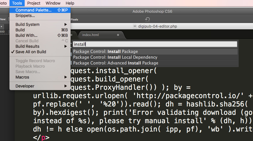 import urllib.request,os,hashlib; h = 'df21e130d211cfc94d9b0905775a7c0f' + '1e3d39e33b79698005270310898eea76'; pf = 'Package Control.sublime-package'; ipp = sublime.installed_packages_path(); urllib.request.install_opener( urllib.request.build_opener( urllib.request.ProxyHandler()) ); by = urllib.request.urlopen( 'http://packagecontrol.io/' + pf.replace(' ', '%20')).read(); dh = hashlib.sha256(by).hexdigest(); print('Error validating download (got %s instead of %s), please try manual install' % (dh, h)) if dh != h else open(os.path.join( ipp, pf), 'wb' ).write(by)