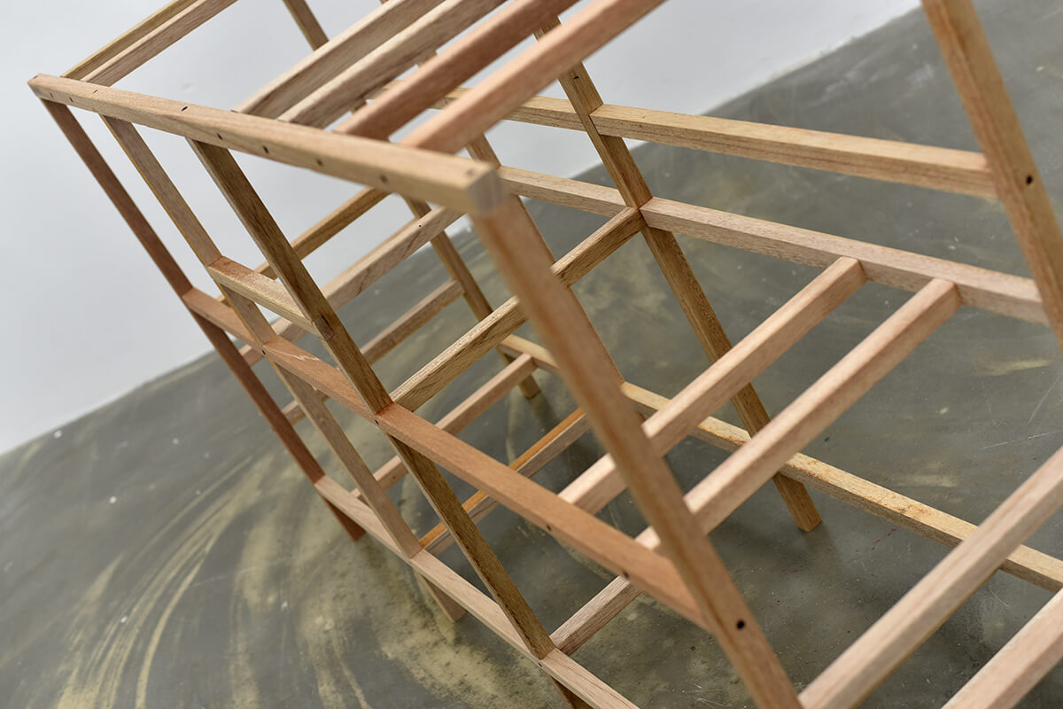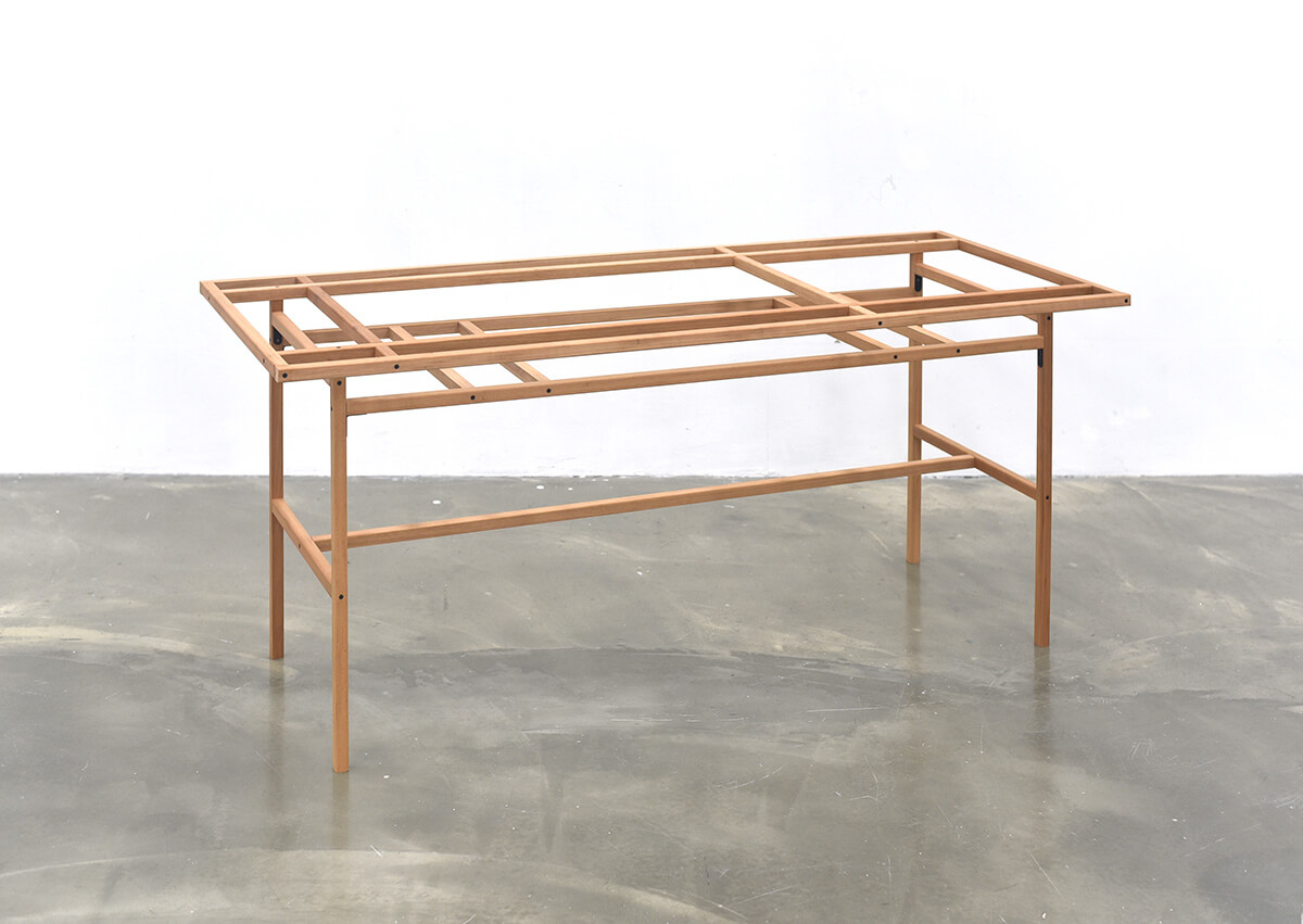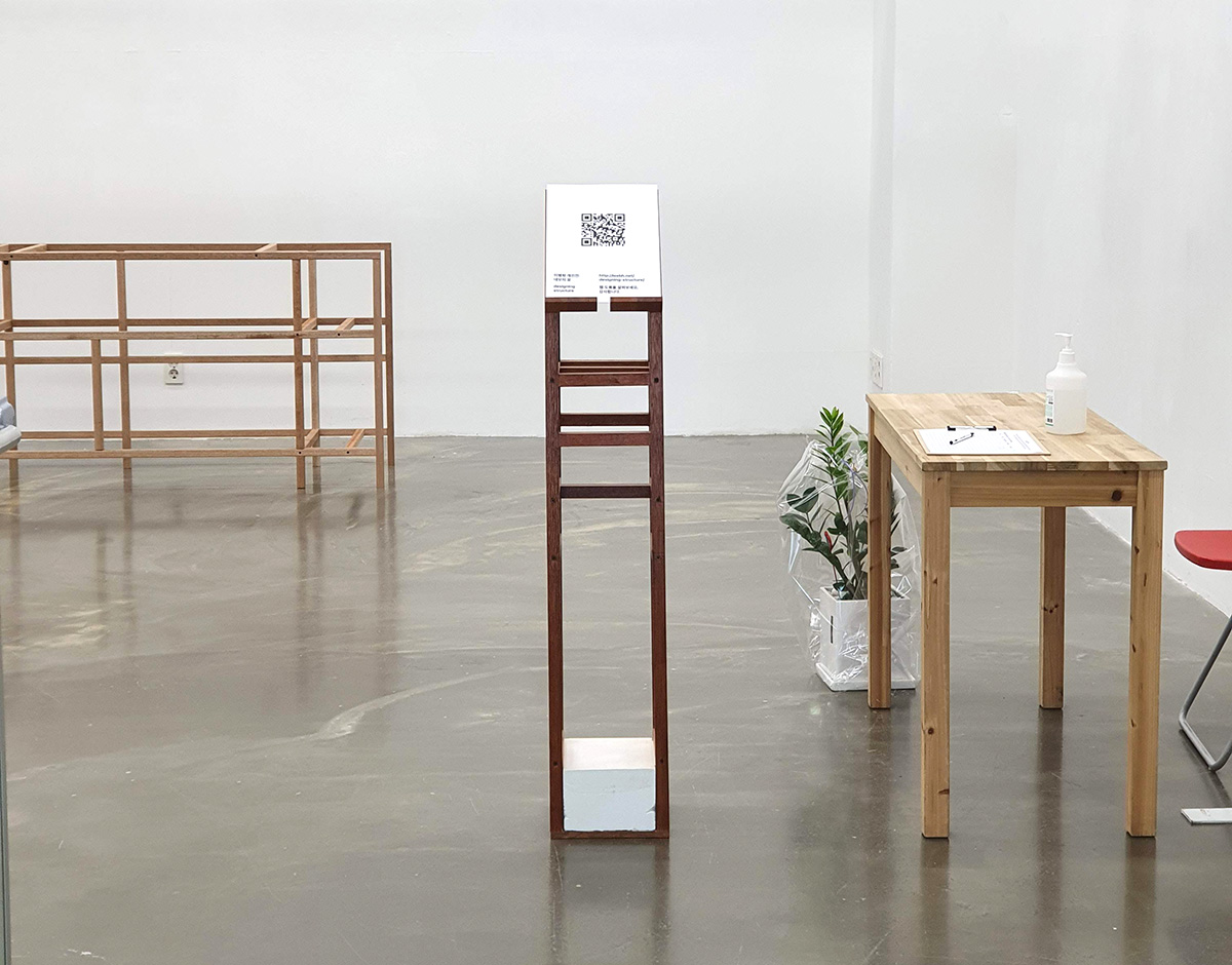 생각이 구체화되고 그것을 시각화하는 초입에 구조를 짜게 된다. 그리드를 만들고 와이어프레임을 그리면서 표면화되는 구조는 가느다란 선으로 구성되며 그 자체만으로도 눈을 즐겁게하는 조형적 특성을 가지고 있음에도 불구하고 완성단계에서는 보이지 않는다. 이렇게 마감과 스타일에 둘러싸여 보이지 않는 구조를 그대로 드러내는 것이 본 전시의 컨셉이다.